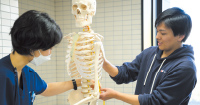 骨や筋の名称を模型を用いて口頭で確認。休み時間や放課後の空き時間に行います。