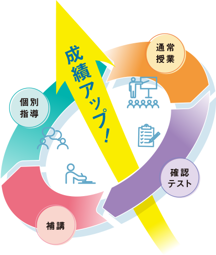習熟度の足りない学生を担任が見逃さない!繰り返しによる知識の完全定着と学生同士のグループ学習で習熟度をお互いに確認します。