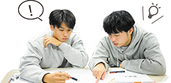 ニッケンは最大30人1クラスの担任制。クラスに分かれて、まずは通常授業で内容を理解します。授業内ではインプットだけでなく、グループやペアになって教え合う時間を設けることも。アウトプットをすることで内容も整理され、記憶も定着しやすくなります。全員が同じ目標を持っているからこそ、男女問わずクラス全体の仲が良いのも特徴です。